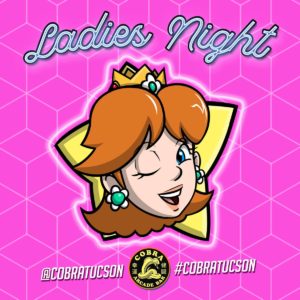 That's RIGHT, Every Wednesday is LADIES NIGHT at Cobra Arcade! FREE Tokens for all the LADIES all night long. Happy Hour 4-8pm / NO COVER / 21+